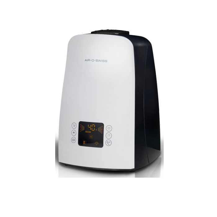 Увлажнитель воздуха Air-O-Swiss U650 один из лучших приборов для увлажнения помещения. Встроенный таймер позволяет задавать время работы прибора в диапазоне от 1 часа до 8 часов. Особенной чертой Air-O-Swiss U650, стала функция теплого пара, благодаря которой вода перед попаданием на ультразвуковую мембрану долгое время нагревается при температуре 80 С. Таким образом вода очищается, а производительность прибора увеличивается. Благодаря особенному покрытию titaniumnitrite поверхность мембраны приобретает характерный золотой цвет и постоянную защиту от повреждений. Air-O-Swiss U650 оснащен ионизирующим серебряным стержнем Ionic Silver Stick (ISS). Данная технологическая разработка обеспечивает эффективное обеззараживание воды и гибель более 650 видов болезнетворных микроорганизмов. В случае недостаточного уровня воды увлажнитель автоматически отключается.