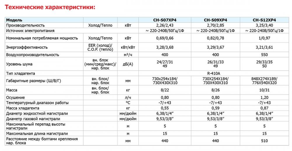 Интеллектуальная система, установленная в кондиционер CH-S07XP4 самостоятельно проведет диагностику и защитит внешний блок от обледенения. Вы можете купить кондиционер других марок-производителей или модели с другими техническими характеристиками, сделав выбор на нашем сайте.