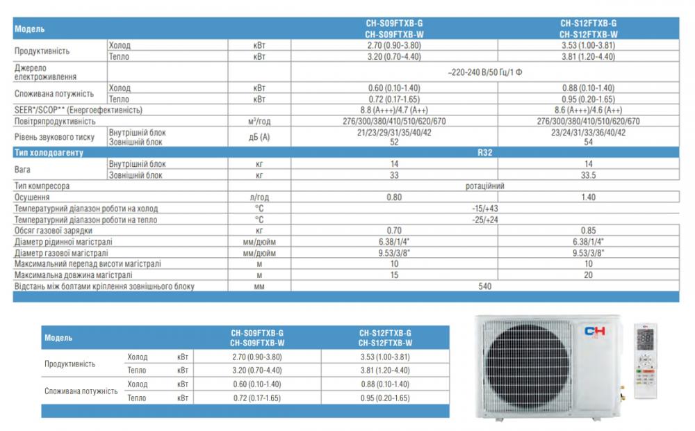 Купить кондиционер CH-S09FTXB-W с бесплатной доставкой по всей Украине, видео обзор