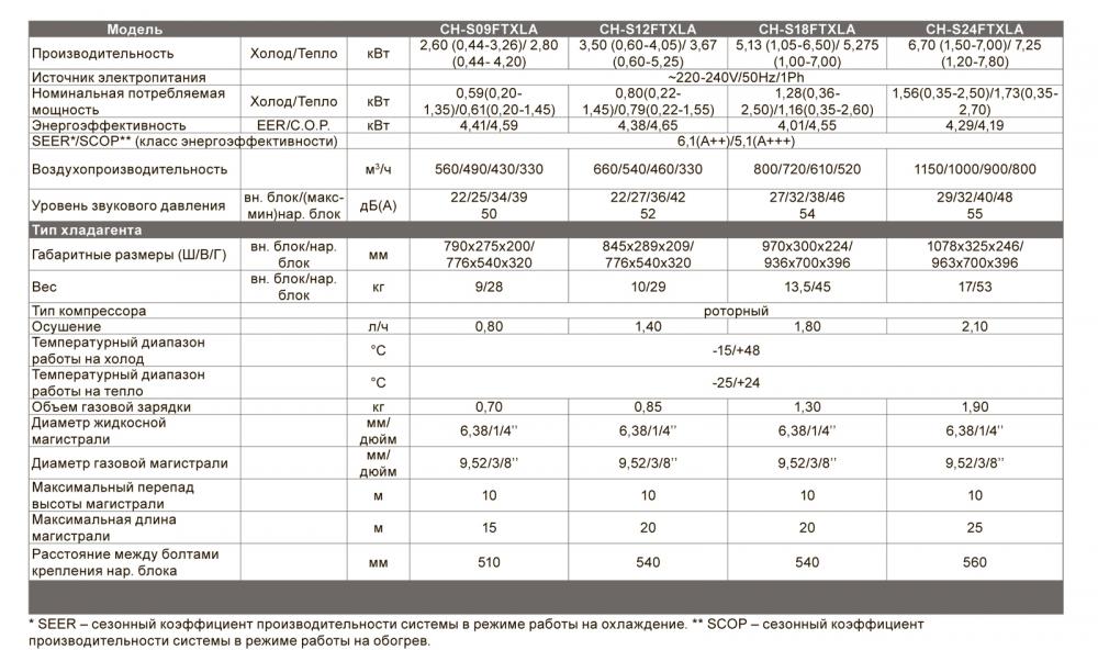 Кондиционер CH-S09FTXLA содержит в себе специальный эксплуатационный алгоритм, позволяющий обеспечить стабильную и эффективную работу при низких температурах на улице, регулируя скорость работы вентилятора наружного блока, а так же подогрев компрессора и поддона.