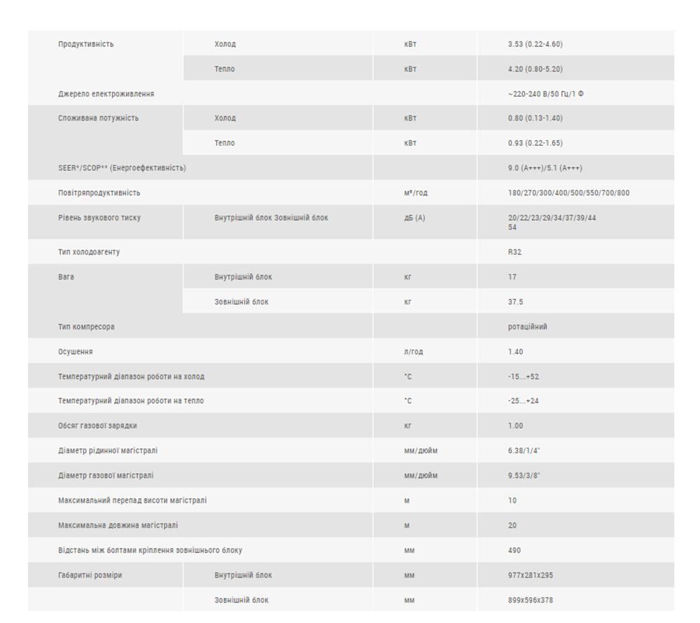 • Безшумна робота внутрішнього та зовнішнього блоків
