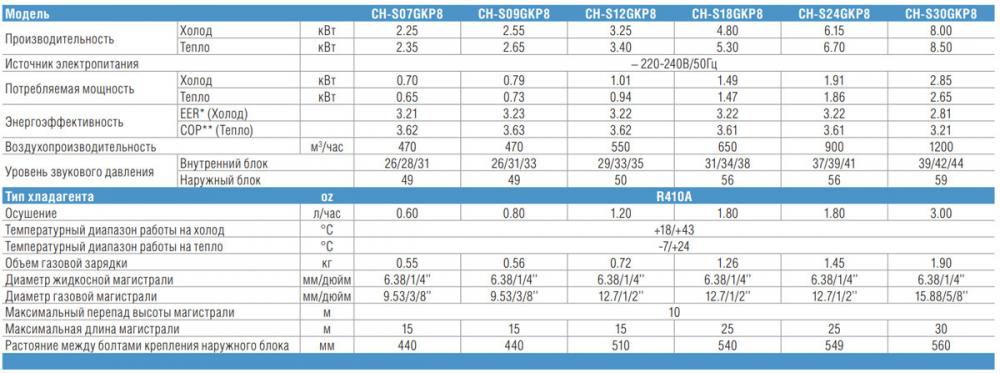 Работа CH-S18GKP8 происходит при помощи озонобезопасного и высокоэффективного хладагента R410а, который безопасен не только для людей, но и для окружающей среды.