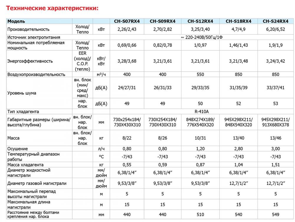 Работа кондиционера CH-S18RX4 происходит при помощи озонобезопасного и высокоэффективного хладагента R410а, который безопасен не только для людей, но и для окружающей среды.