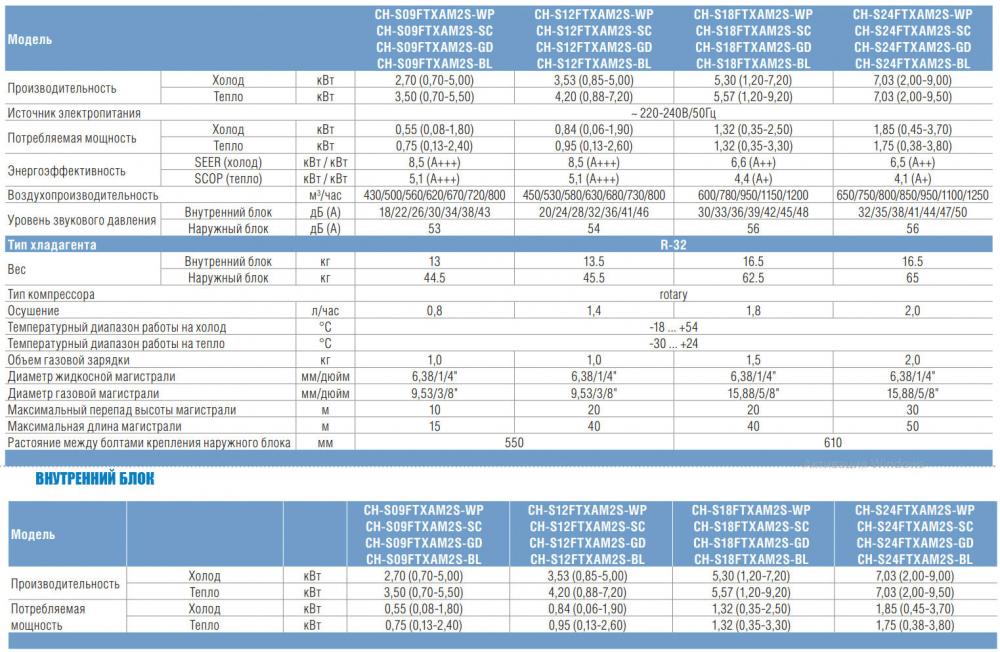 Запуск при низких температурах позволяет обеспечить диапазон работы кондиционера CH-S24FTXAM2S-WP в пределах от -30С до +24С – на обогрев и -15С до +54С на охлаждение.