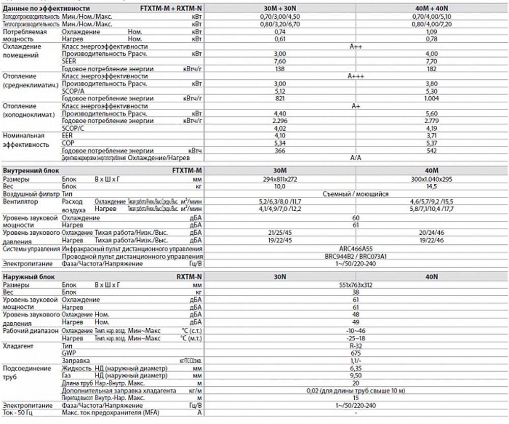 Технические данные Daikin Daikin FTXTM40M / RXTM40N