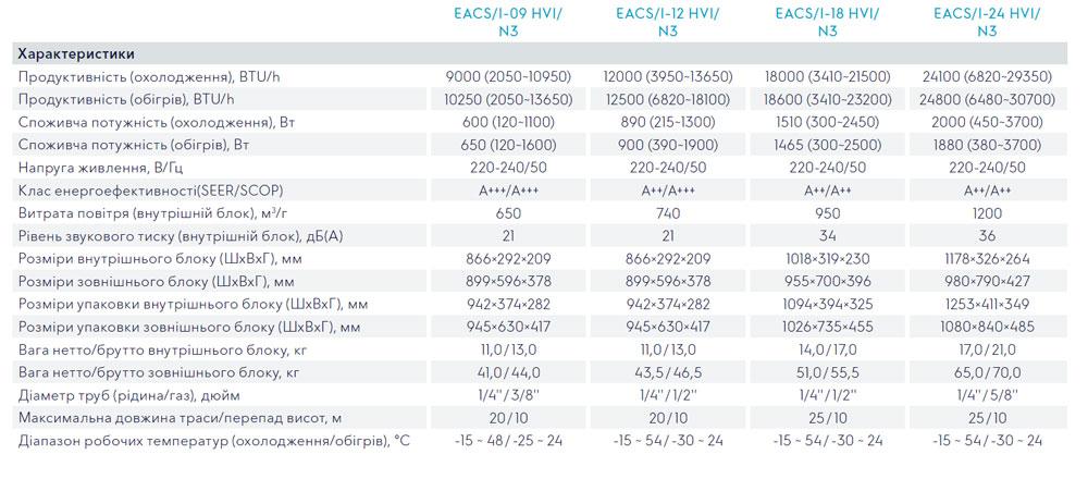 - Класс энергоэффективности «А+++/А+++» EACS/I-12HVI/N3