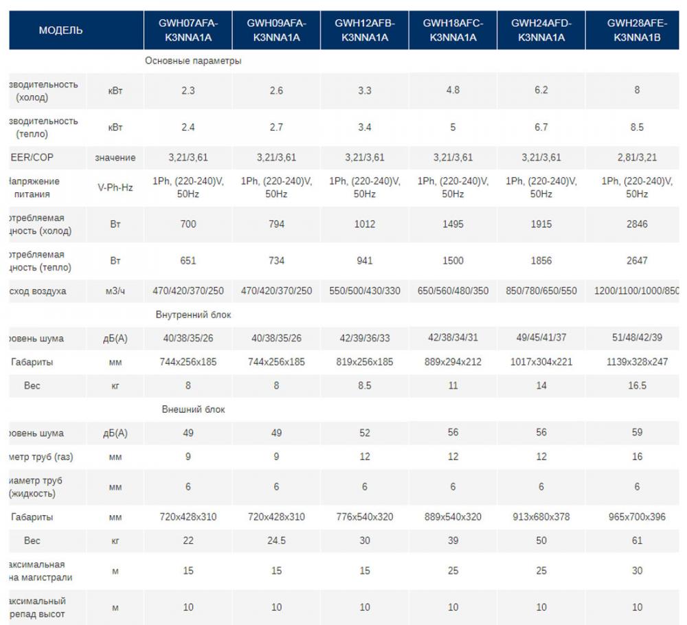 - Работа на обогрев до -7С GWH07AFA-K3NNA1A