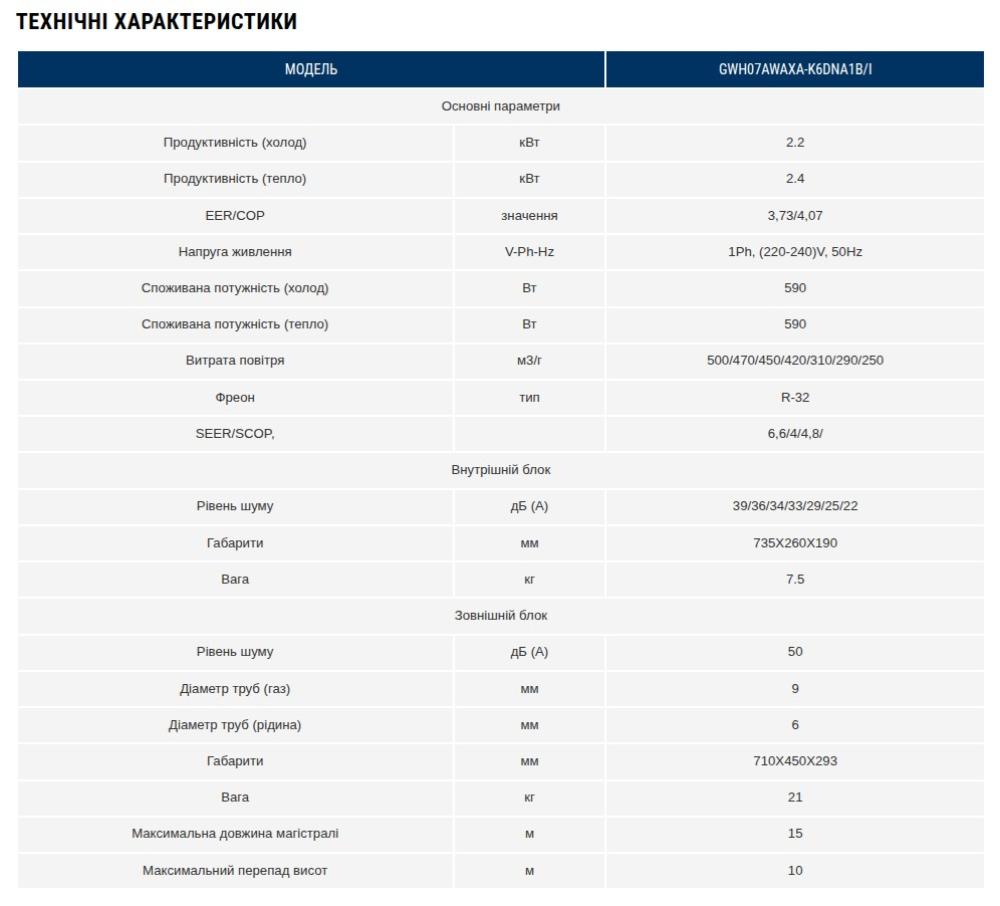 Купити Gree GWH07AWAXA-K6DNA1B з безкоштовною доставкою по Україні