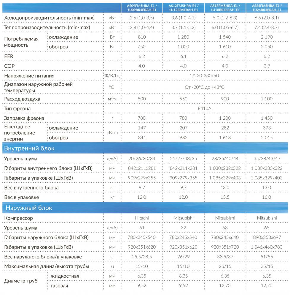 - Охлаждение / обогрев AS24FM5HRA-E1 / 1U24BR4ERAH-E1