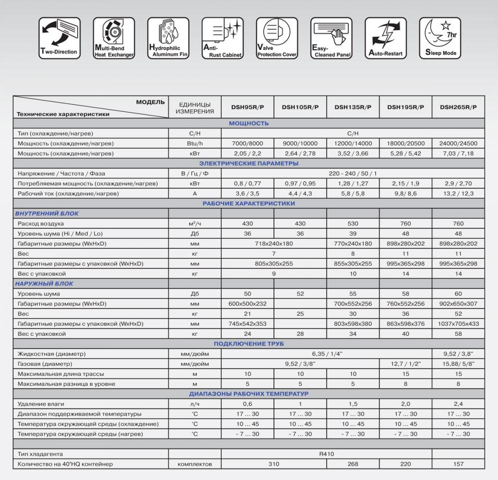 Кондиционер DSH95R/P будет надежным помощником в обеспечении Вашего комфорта, так как способен позаботится о спокойном сне Вас и Ваших близких, благодаря режиму сна.