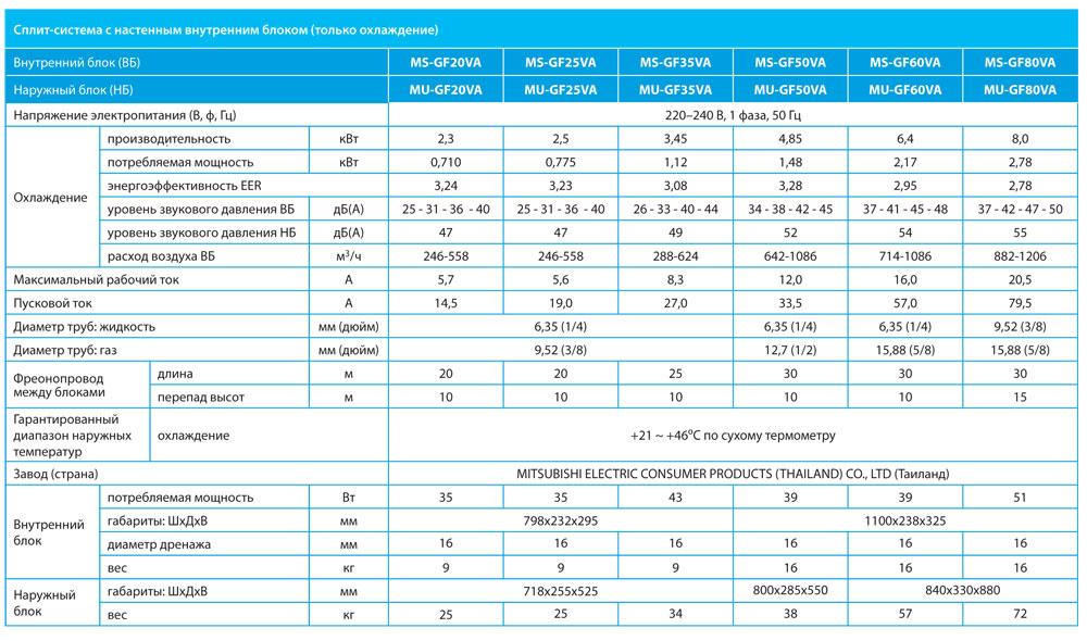 Функции и возможности Mitsubishi Electric MS-GF35VA / MU-GF35VA:
