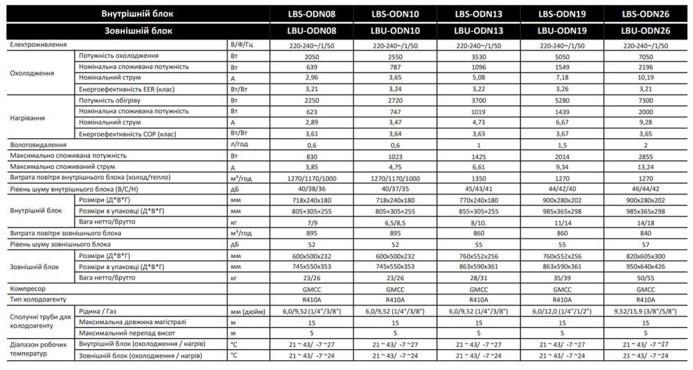 Сплит-система LBS-ODN26 / LBU-ODN26 производит свою работу на энергоэффективном и озонобезопасном фреоне R410a.