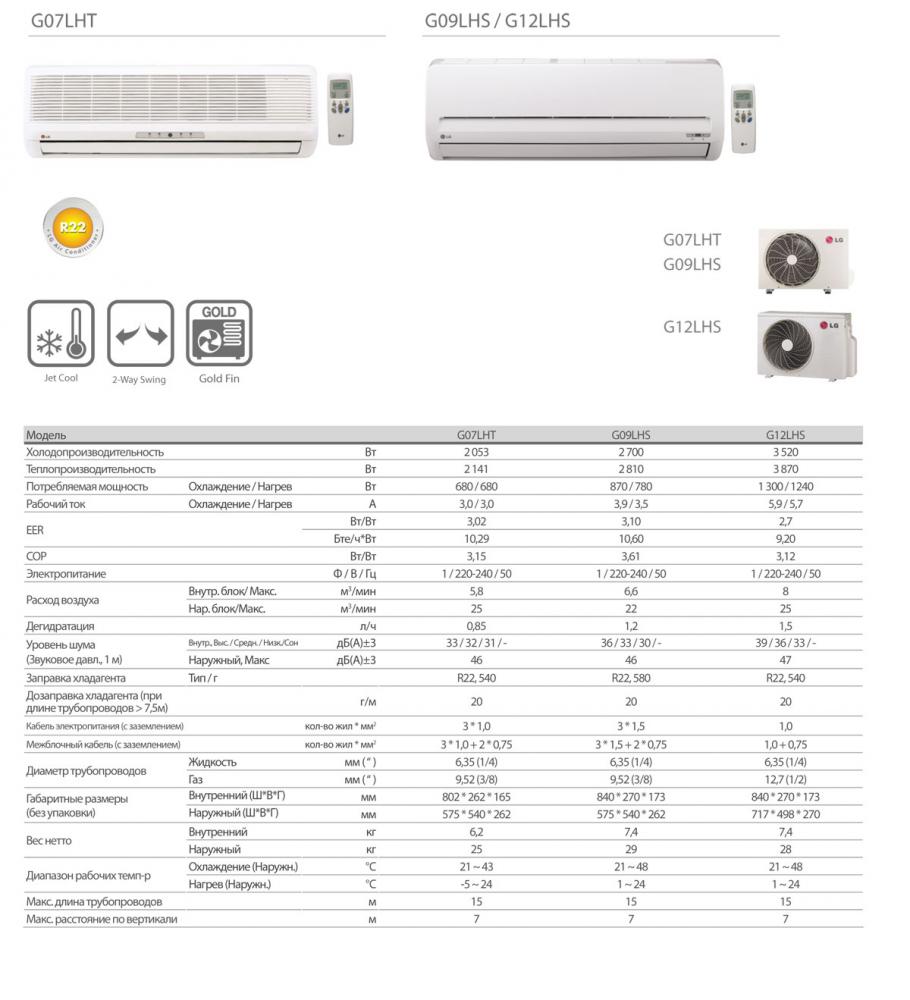 Бытовые кондиционеры LG G12LHS. Настенного типа, модель Standard. Покрытие теплообменника Gold Fin. 2-Way Swing. Jet Cool