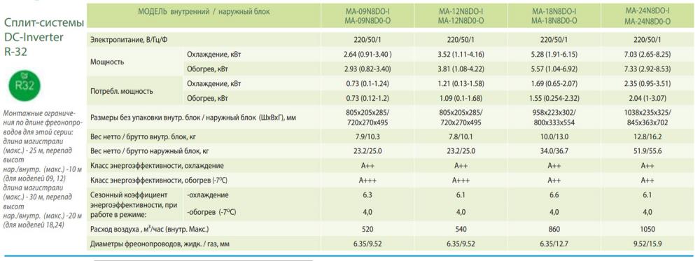 Хладагент R32 обеспечивает эффективную работу MA-09N8DO-I / MA-09N8DO-O и позволяет позаботится о окружающей среде, так как не содержит озоноразрушающих веществ и соответственно безопасен и для озонового слоя планеты Земля и для человека.
