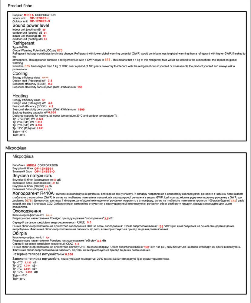 Midea OP-12N8E6-I / OP-12N8E6-O