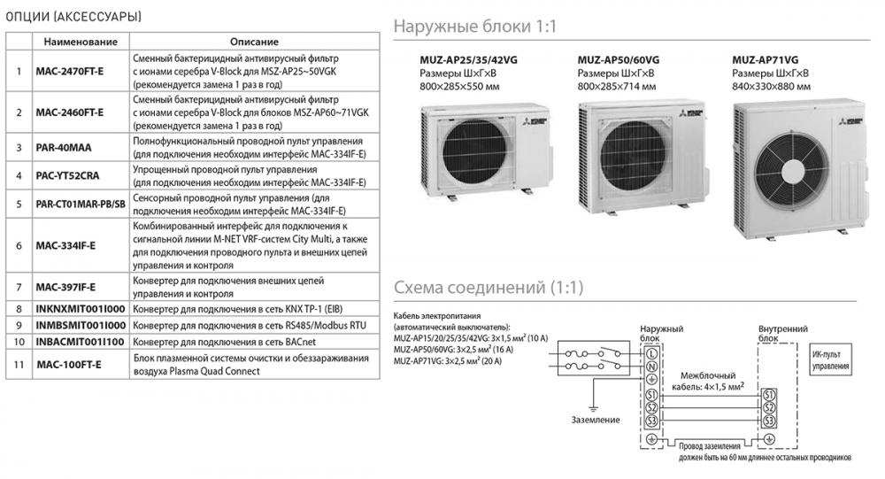 - MXZ подключение MSZ-AP50VGK / MUZ-AP50VG