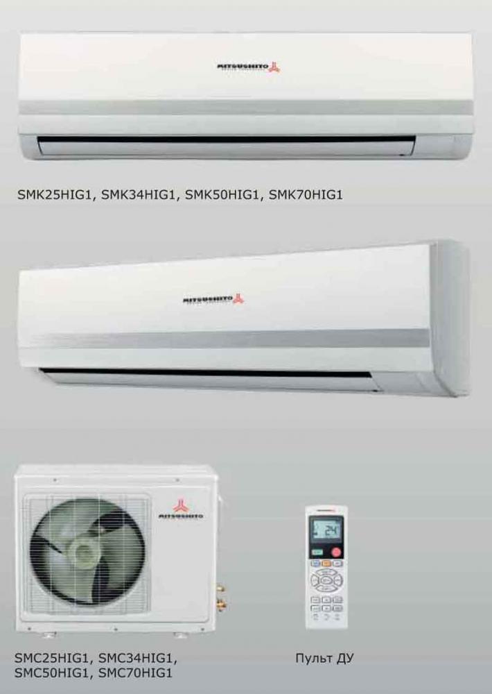 Кондиционер SMK/CMK70HIG1 имеет функцию самодиагностики, благодаря которой микропроцессор производит самостоятельный анализ работы узлов и соединений сплит-системы. Обнаружив неисправность, кондиционер Mitsushito выведит на дисплей внутреннего блока код ошибки.
