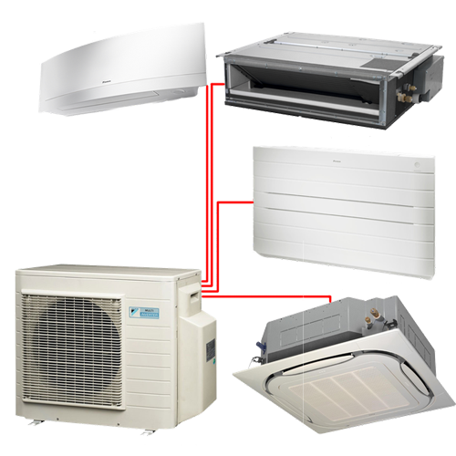 Мультисплит системы — это системы кондиционирования состоящие из одного наружного блока и двух и более внутренних. Наружный блок может компоноваться внутренними блоками трех типов: кассетным, канальным и настенным. Чаще всего мульти-сплит системы устанавливаются в частных домах, многокомнатных квартирах, гостиницах, офисах, ресторанах, спортивных клубах и других подобных заведениях.