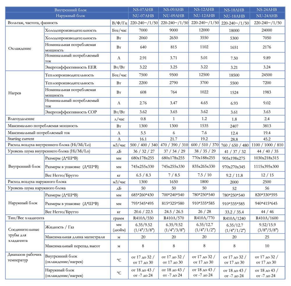 - Холод / Тепло NS24AHB / NU24AHB