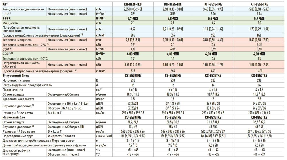 Инверторная сплит-система CS-BE35-TKE / CU-BE35-TKE работает как тепловой насос, позволяя энергоэффективно эксплуатироваться при температурах до -15С.