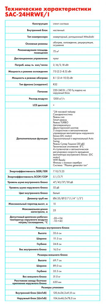 Купить SAC-24HRWE/I с бесплатной доставкой по Украине